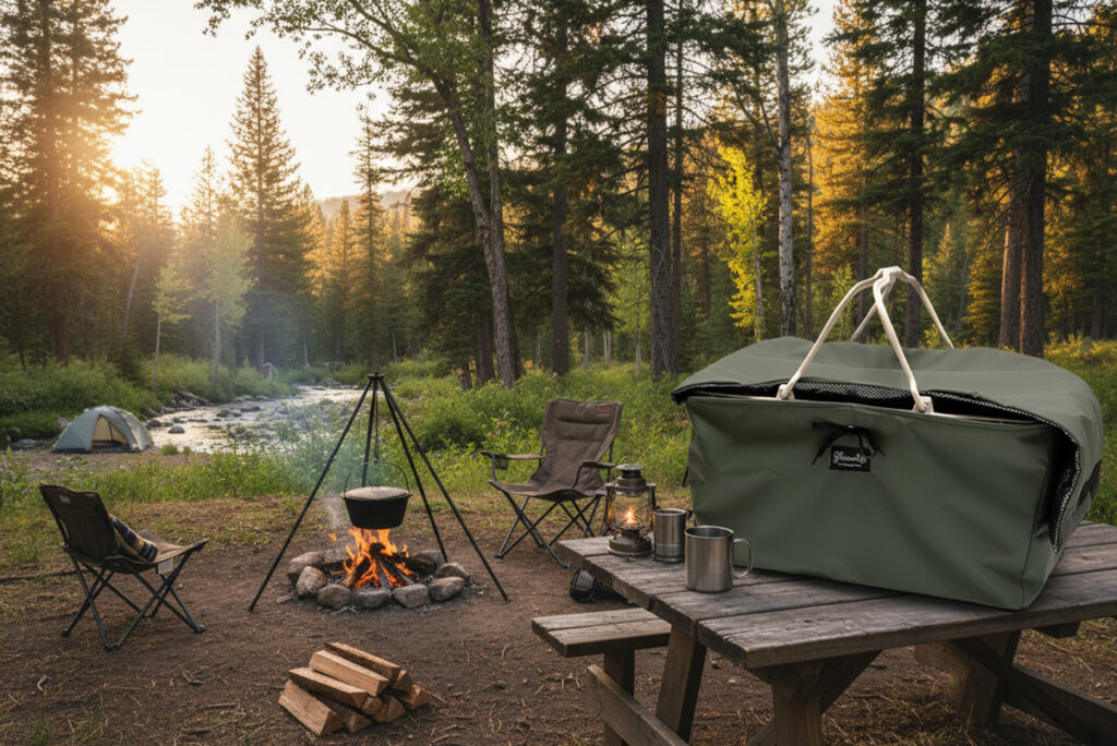しかし、実際に製品を手にしたユーザーから寄せられたのは、開発側の予想を超えるフィードバックでした。「撥水性が高いから、キャンプでの夜露や急な雨でも安心」「カゴごと車に載せられるので、デコボコ道でも卵や瓶類が割れない」「デザインがキャンプサイトに馴染む」