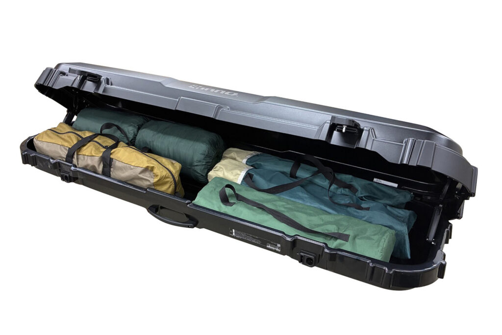 最大の特徴は、そのスリムな全幅です。ルーフの片側に寄せて装着することで、反対側にサイクルキャリアやルーフラック、さらにはカヤックキャリアなどを併載することが可能になりました。これにより、一人のユーザーが「キャンプ+釣り」「スキー+サイクル」といった複数の趣味を同時に、妥協なく持ち運ぶことができるようになります。