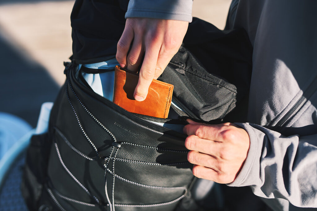 「THE Walker」はこの課題を、「背面アクセス構造」という答えで解決しました。ロールを開けずに中身を確保することができるほか、背面側に配置されたジッパーによりメインコンパートメントへダイレクトにアクセスが可能です。また、スマートな所作でカフェでのPC取り出しや、駅での荷物整理もバッグを下ろさずスムーズに行うことができます。また、小物の収納に便利な防水仕様のポケットも適所に配置。スマートフォンの取り出しから、濡れた折りたたみ傘の収納まで、現代人の動線を徹底的に研究した実用性が光ります。