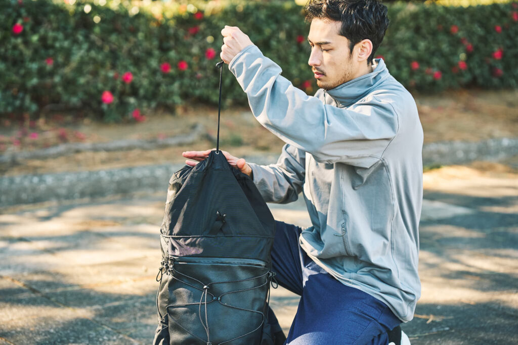 UL系のバックパックに多い「ロールトップ構造」は、防水性や容量の可変性には優れていますが、中の物を取り出しにくいという欠点がありました。