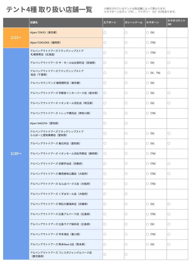 即完テントが最速再販! ネット限定品が店頭で購入できる全国41店舗のポップアップが2月13日よりスタート