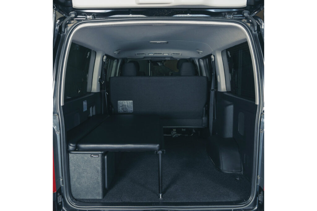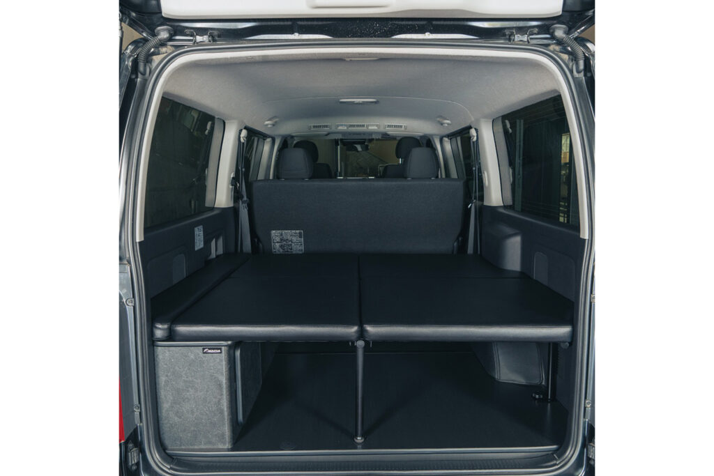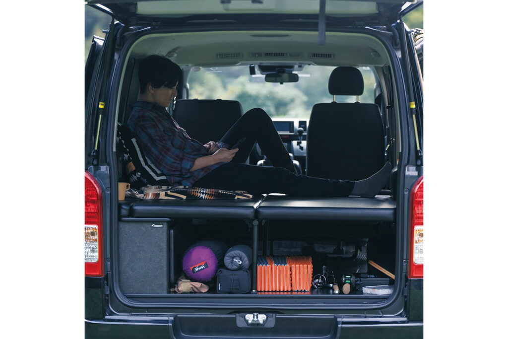 さらに計算された機能美は、アウトドアギアとしてのタフさを持ちながら、大人の所有欲を満たす洗練されたデザインとなっています。また、長距離移動の休憩や、キャンプ場での就寝、あるいは景色の良い場所でのワーケーションなど、「プレミアムベッドセット」があればハイエースのリアゲートを開けたその場所が、最高のプライベート空間になります。「車中泊は窮屈で疲れる」 そんな古い常識を捨てて、愛車を“移動するスイートルーム”に変えてみませんか?