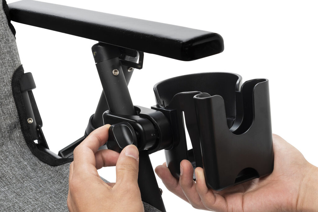アウトドアの地面は、必ずしも平坦ではありません。傾斜のある場所でチェアを設置した際、固定式のホルダーだと中の飲み物がこぼれそうになることがあります。