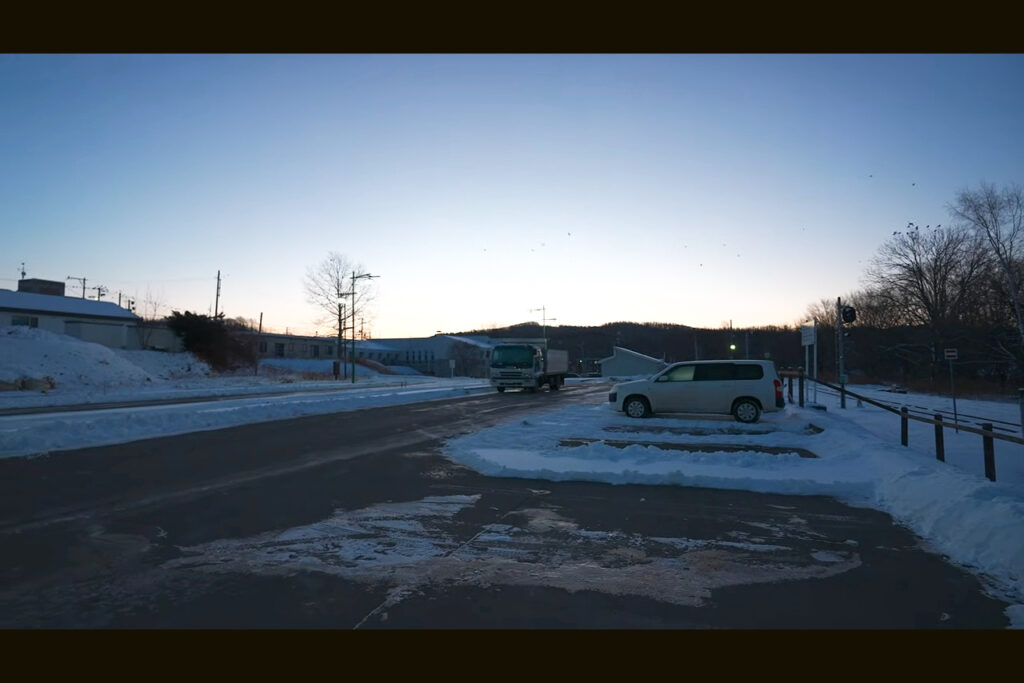 出発したのは12月上旬の朝でした。北海道では早くも冬が本格化して、路面はアイスバーンになっているため注意が必要です。さらに進むにつれて雪と風が次第に強まり、遠くの景色が見えなくなっていきます。