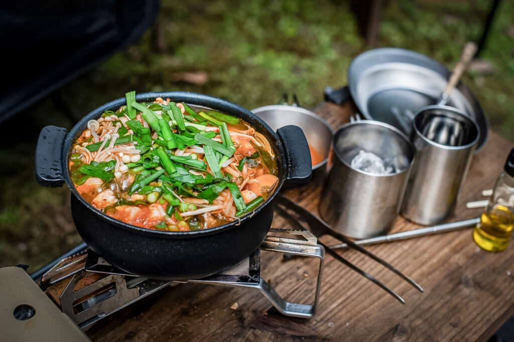 手っ取り早く身体を温めたいなら辛いものが最適。そこでおすすめなのが、アウトドアシーンに限らず、冬に人気が高まる「キムチ鍋」です。自宅でも、冬になると身体を温めるためにキムチ鍋をよく食べるという人は多いのではないでしょうか。