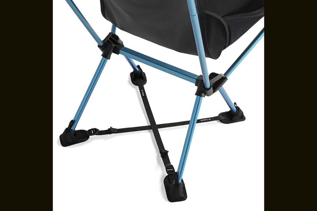 もともと軽量性・耐久性・快適性の三拍子が揃ったヘリノックスのチェアですが、今季登場する「チェアゼロ LT」は、その軽さにいっそう磨きがかかっています。特筆すべきは荷重を分散させることで全体の安定感を高める「グラウンドストラップ」が標準で付属している点。これにより、超軽量モデルながらもさらに安心して身を預けられる一脚となっています。