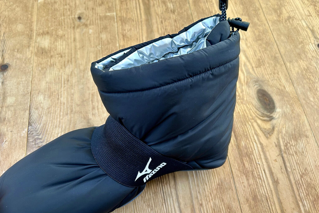 最大の特長は独自の「中綿×アルミシート」による断熱2層構造。体温を逃さず、外からの冷気を遮断することで、魔法瓶のように暖かさをキープします。甲部分や履き口にはストレッチ素材を使用し、足の動きにフィット。さらにドローコードで履き口を絞めるため、暖かい空気を逃さない徹底した設計。