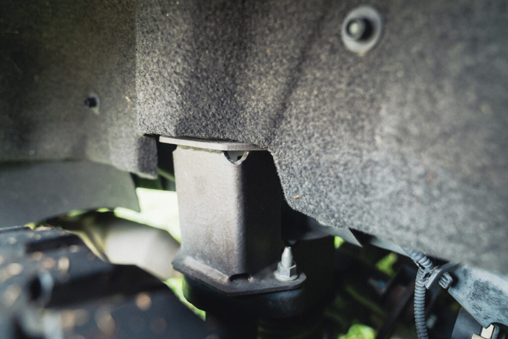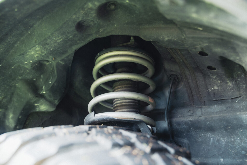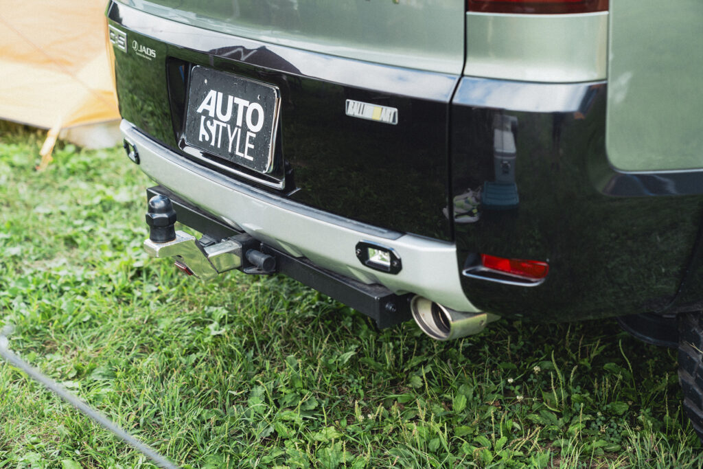 エクステリアの見どころは、デリカD:5が持つ優れた四駆性能を最大限に味わえる足まわりのリフトアップです。ジャオスのスプリングに加え、ハートランド製の4インチブロックキットを組み合わせて大柄なボディをよりワイドに見せています。しかしまだまだ満足できないようで、もう少しだけ車高を上げたいそうです。