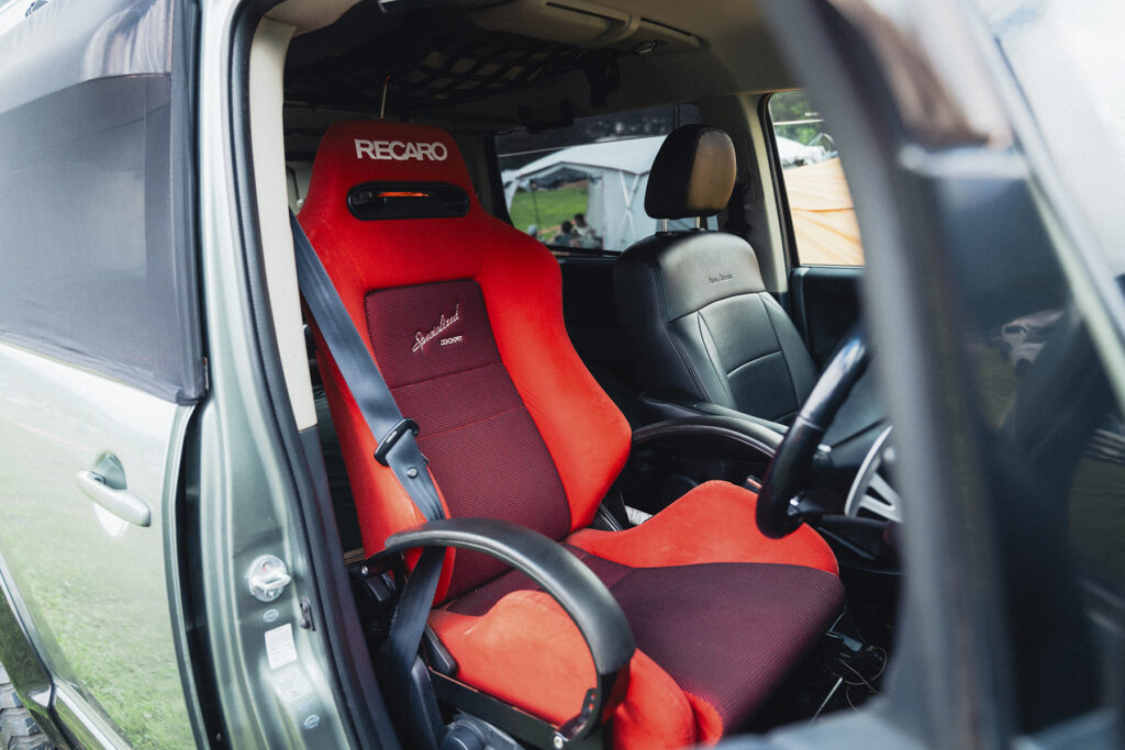 フロントランプは三菱ラリーカー仕様 運転席はレカロ+自作アームレストで極上の快適さ