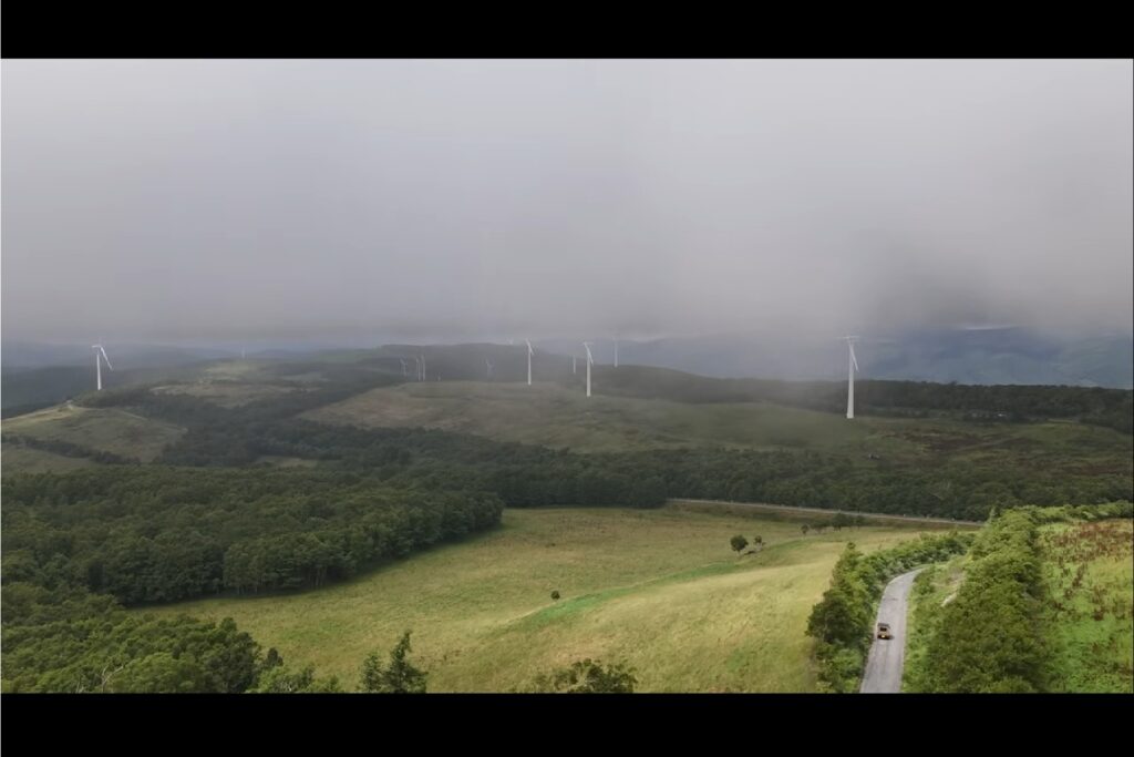 GoogleEarthで旅先を探していたときに見つけたのが、今回のお目当ての廃バスです。どこまでも続く一本道を進み、標高が高いため雲の中に入ってもさらに先へ。そこには風車が立ち並ぶ、幻想的な光景が広がります。