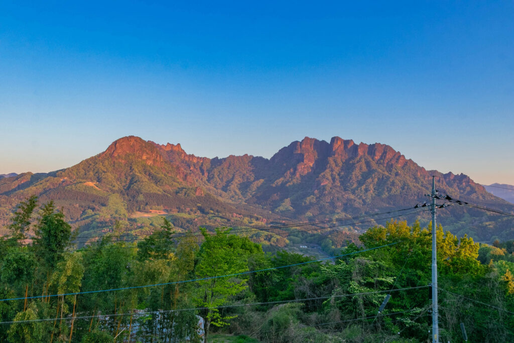 「妙義山(みょうぎさん)」は赤城山、榛名山とともに上毛三山に数えられる、群馬県を代表する山のひとつです。数百万年前の火山活動と長い侵食の作用によって生まれた険しい峰々は、古くから山岳信仰の対象として人々に親しまれてきました。