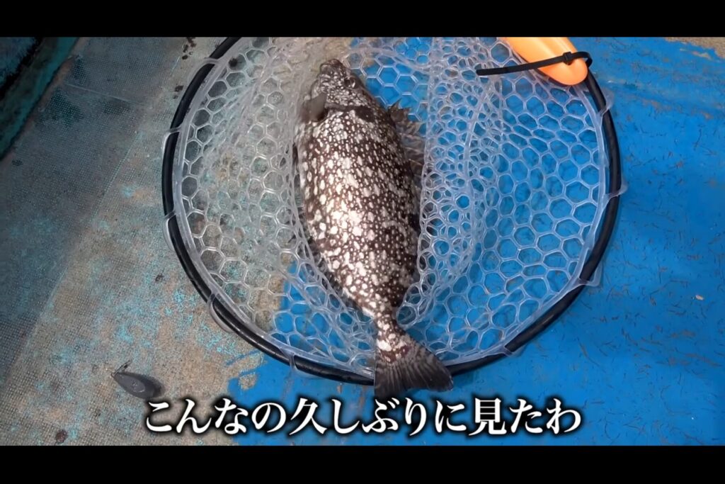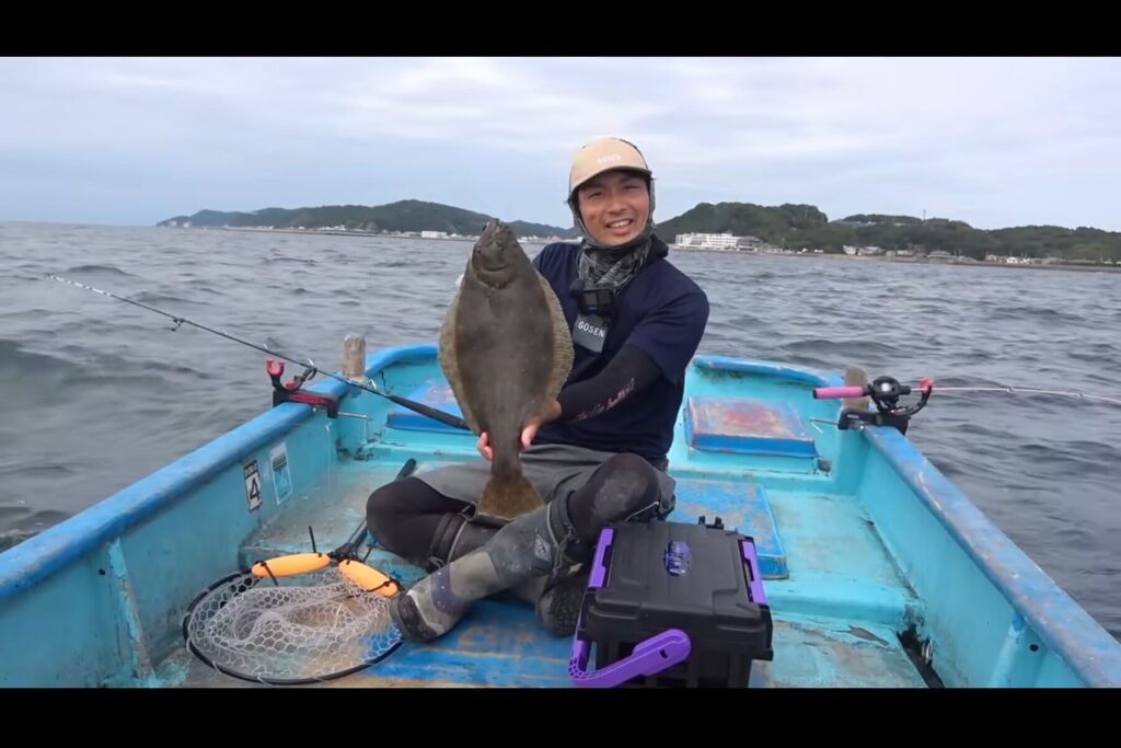 そして後半、やっくんの竿に待望の大物が。慎重にリールを巻き上げると、見事なヒラメが姿を現しました。これに船上は一気に大盛り上がり。「腰痛バースデーフィッシュやったぜ!」とやっくんは感無量の様子です。
