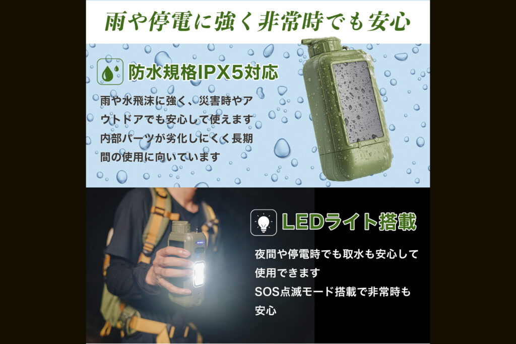 「どこでも安心安全ウォーター AN-S152」の真価は、災害時などの「もしも」の場面でも発揮されます。断水時に飲み水を確保し、停電時には明かりを灯す。想定価格1万9800円という投資で、アウトドアの快適さといざという時の生存戦略を同時に手に入れられるのは大きな魅力です。