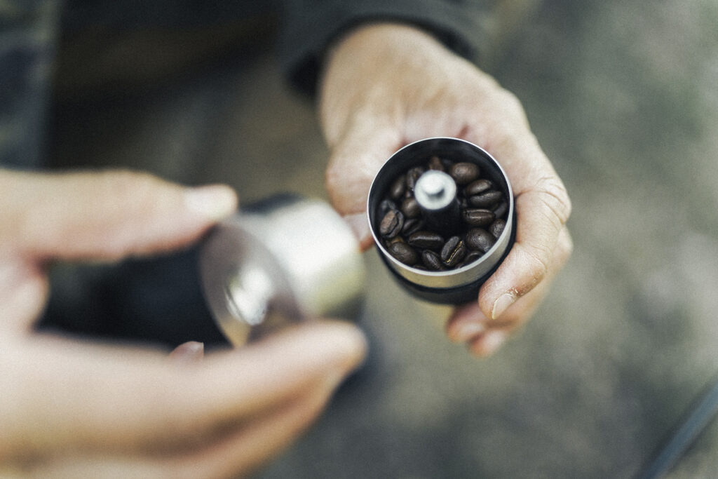 最後に触れておきたいのが、豆の挽き方と道具選びです。自宅で使う据え置き型のコーヒーメーカーも便利ですが、アウトドアでは携帯しやすいオールインワンタイプが便利です。ミルや抽出器具、カップ類をひとまとめにした製品もあり、荷物を抑えながら、豆を挽いて淹れる楽しさを外でも味わえます。