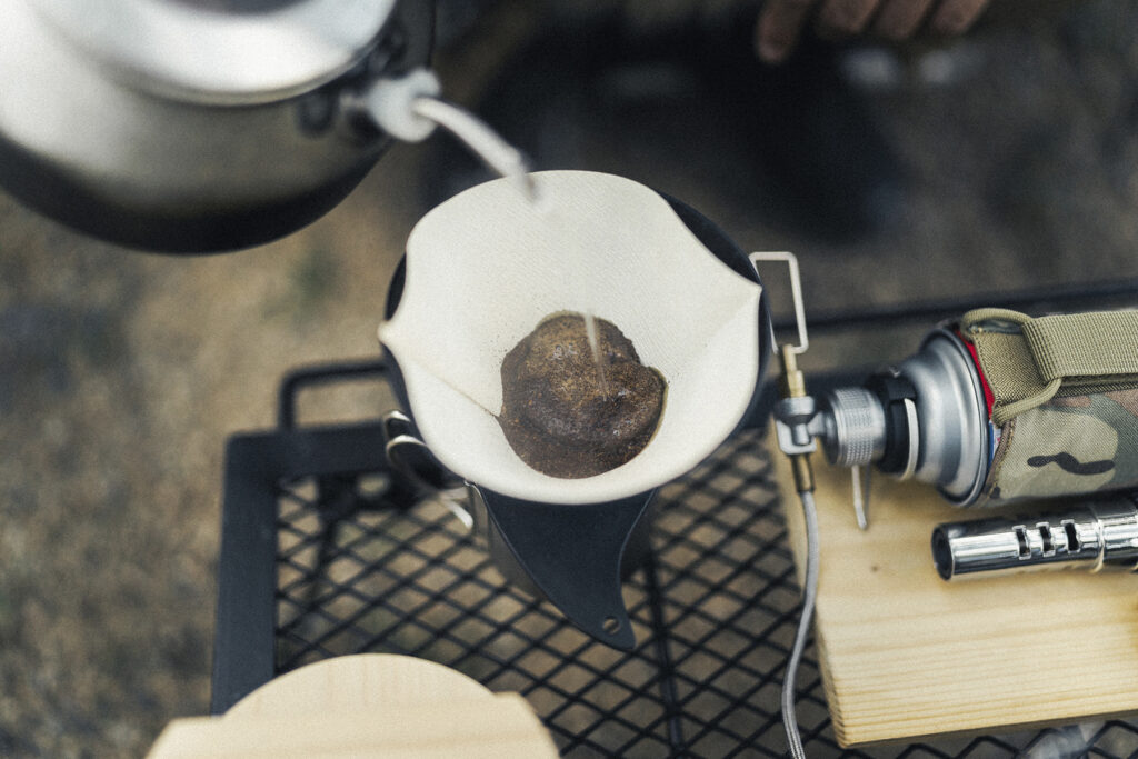 アウトドアシーンの中でも、身も心もほっと緩むのがコーヒータイムです。寒い朝に丁寧に淹れた一杯は、飲むほどに体をじんわり温めてくれます。そんな時間に楽しみたいのが、コーヒー豆を挽いて淹れるレギュラーコーヒーです。