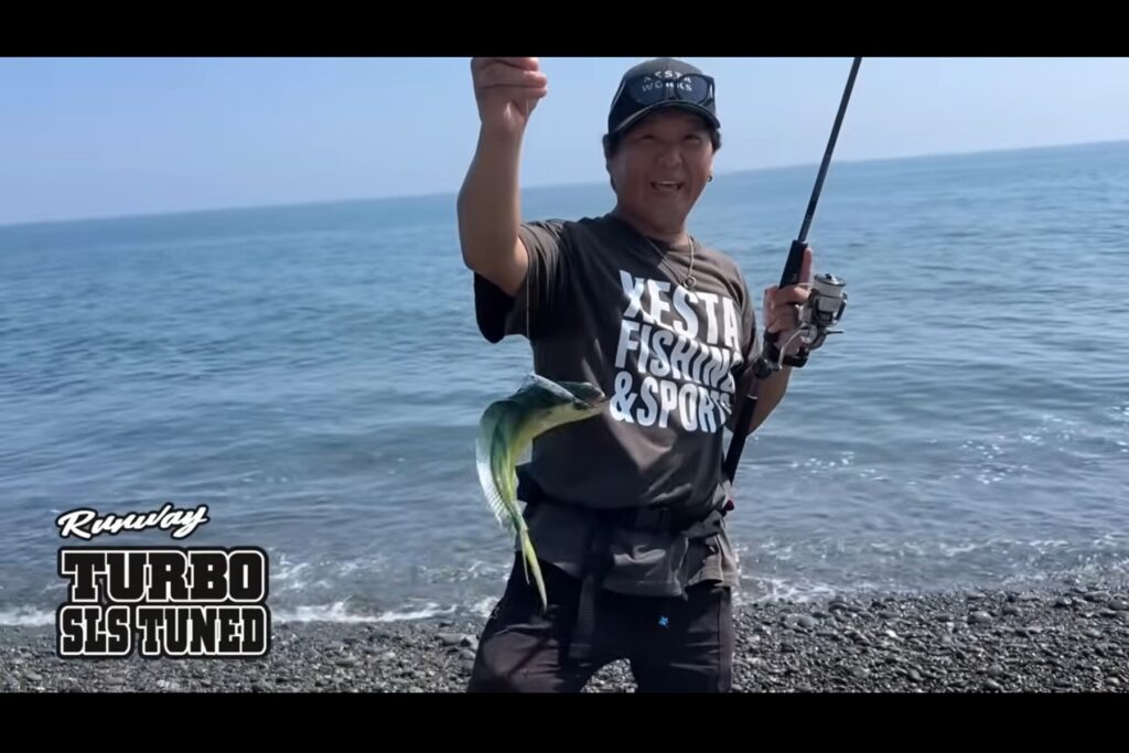 動画冒頭では、『六畳一間の狼』を配信するハヤマさんが早朝のサーフに到着するシーンから始まります。噂でシイラやサワラが釣れると聞きつけ、やる気をみせるハヤマさん。早速周りの釣り仲間たちから声があがると、次々とペンペン(シイラの幼魚)が釣れ始め、お祭りモードに入りました。そしてハヤマさん自身も立派な一匹をゲット。