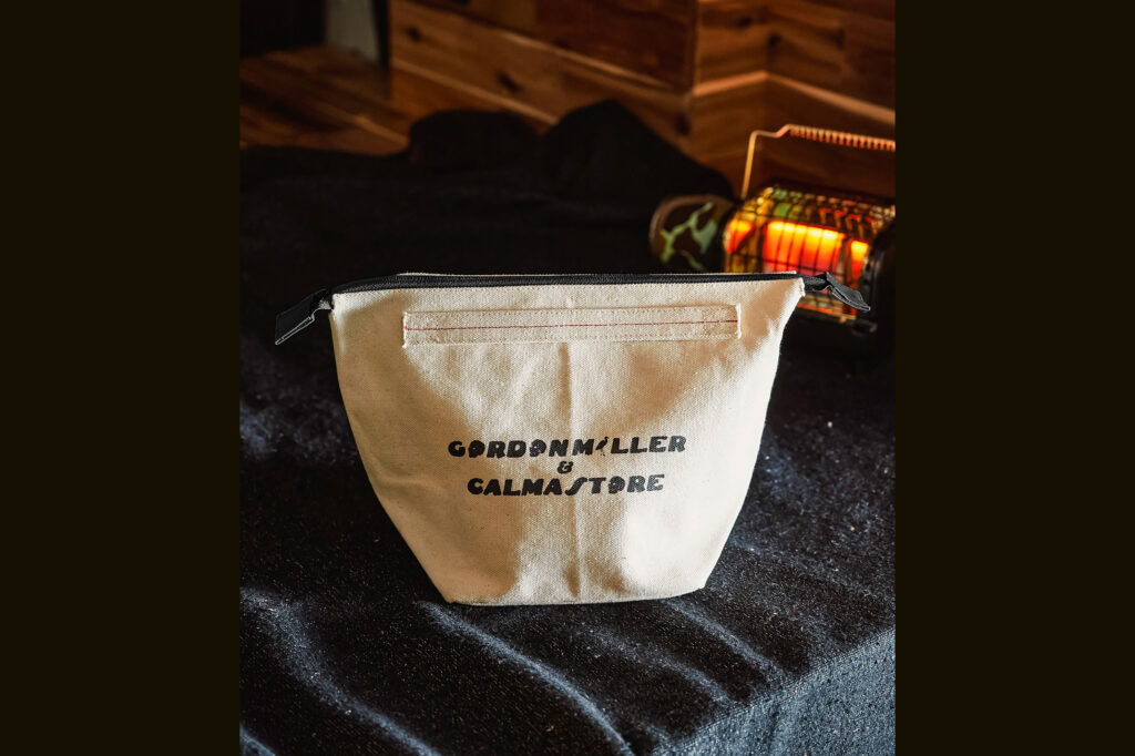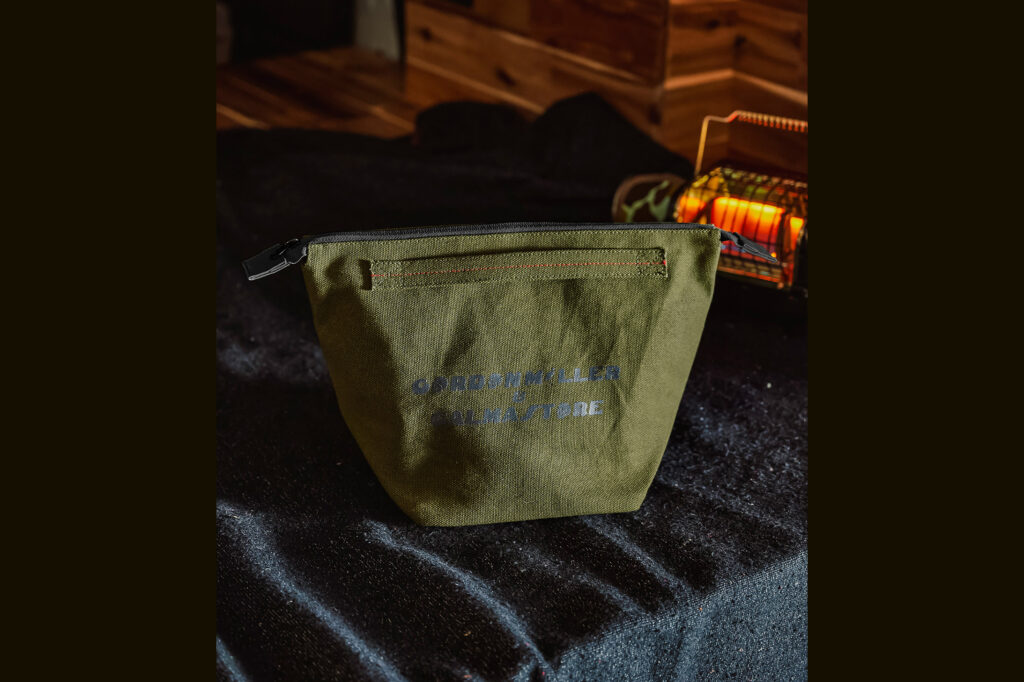 素材はコットン100%のキャンバス地。約20cm立方のコンパクトなボディながら頑丈で無骨な仕上がりでスパイスやキッチン小物、サニタリー用品など車内の細かい荷物整理にも活躍します。畳むとハンドルがぺたんこになるので、使わないときの収納も場所を取りません。カラーはオフホワイトとカーキの2色展開で、どちらもブラックのコラボロゴプリント入りです。