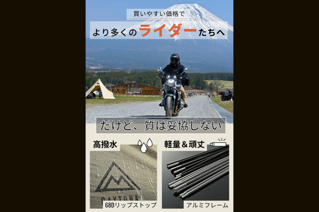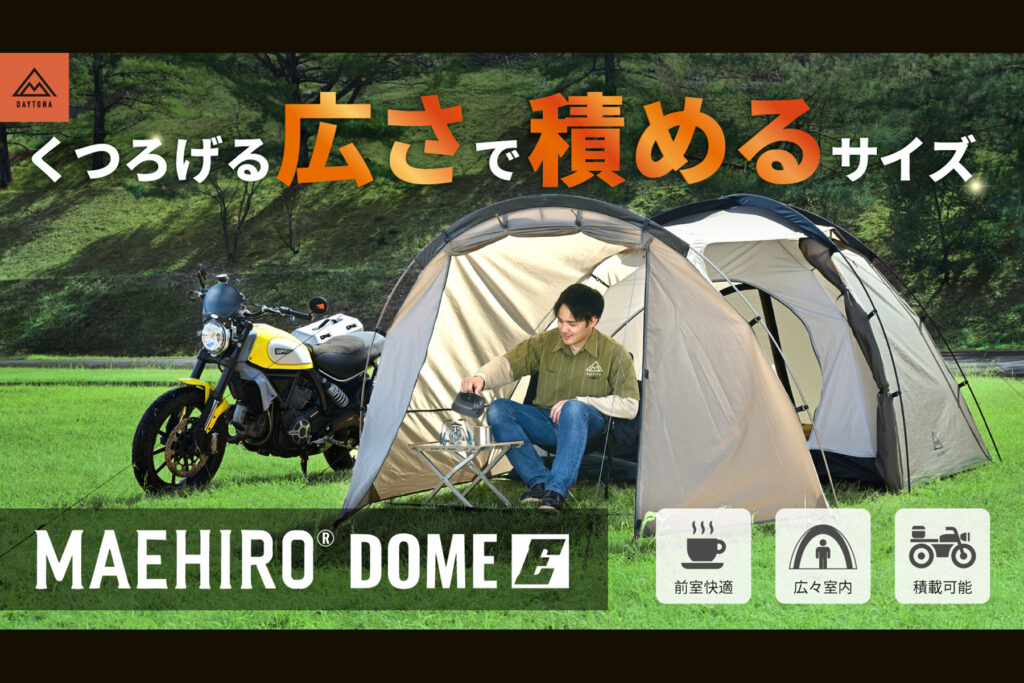 オートバイ用品メーカーのデイトナが、バイクツーリングとキャンプを愛するライダー向けのテント「MAEHIRO DOME E(マエヒロドーム イー)」をリリースしました。
