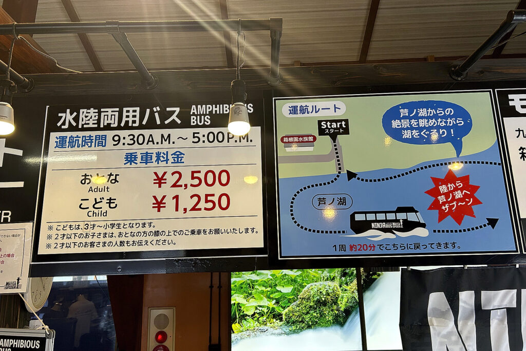 箱根にある水陸両用バス「ニンジャバス」のチケット売り場