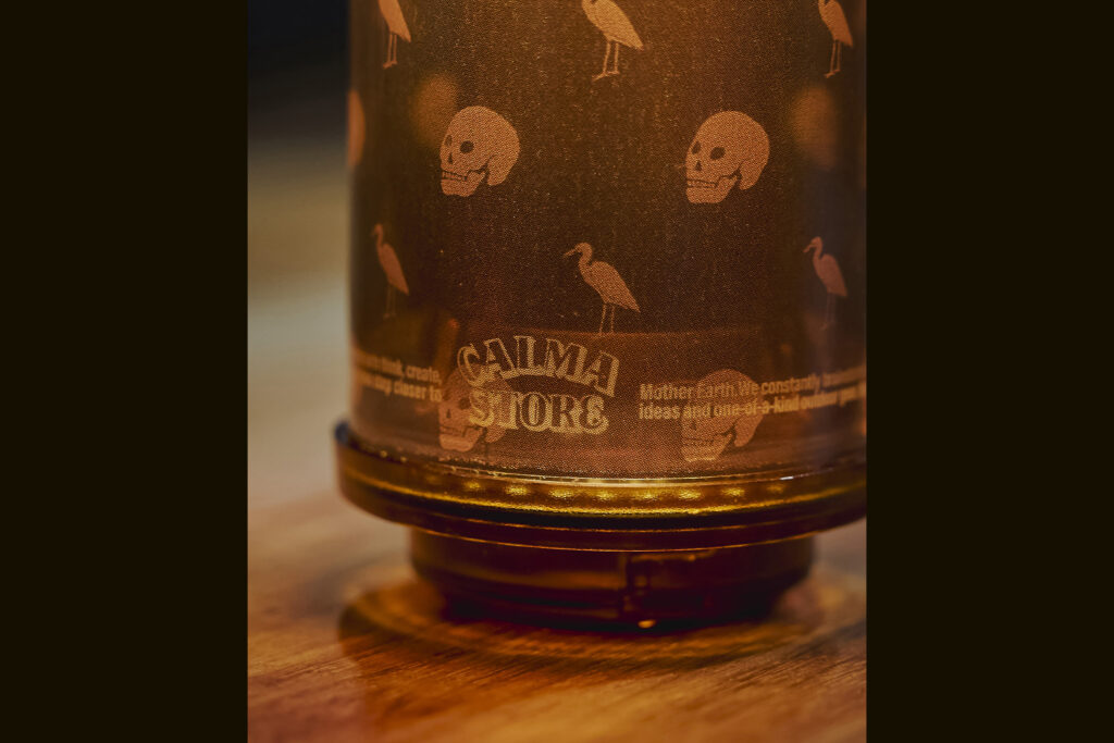 コラボのロゴは骸骨の上に静かにとまるアマサギ。争わず、奪わず、ただそこに居ることで生きるアマサギと、地位も肩書きも残らない骸骨——バンライフで旅する中で感じる本質的な気づきを表現しています。「強くならなくて良い」というメッセージが、このコラボ全体を貫くテーマです。
